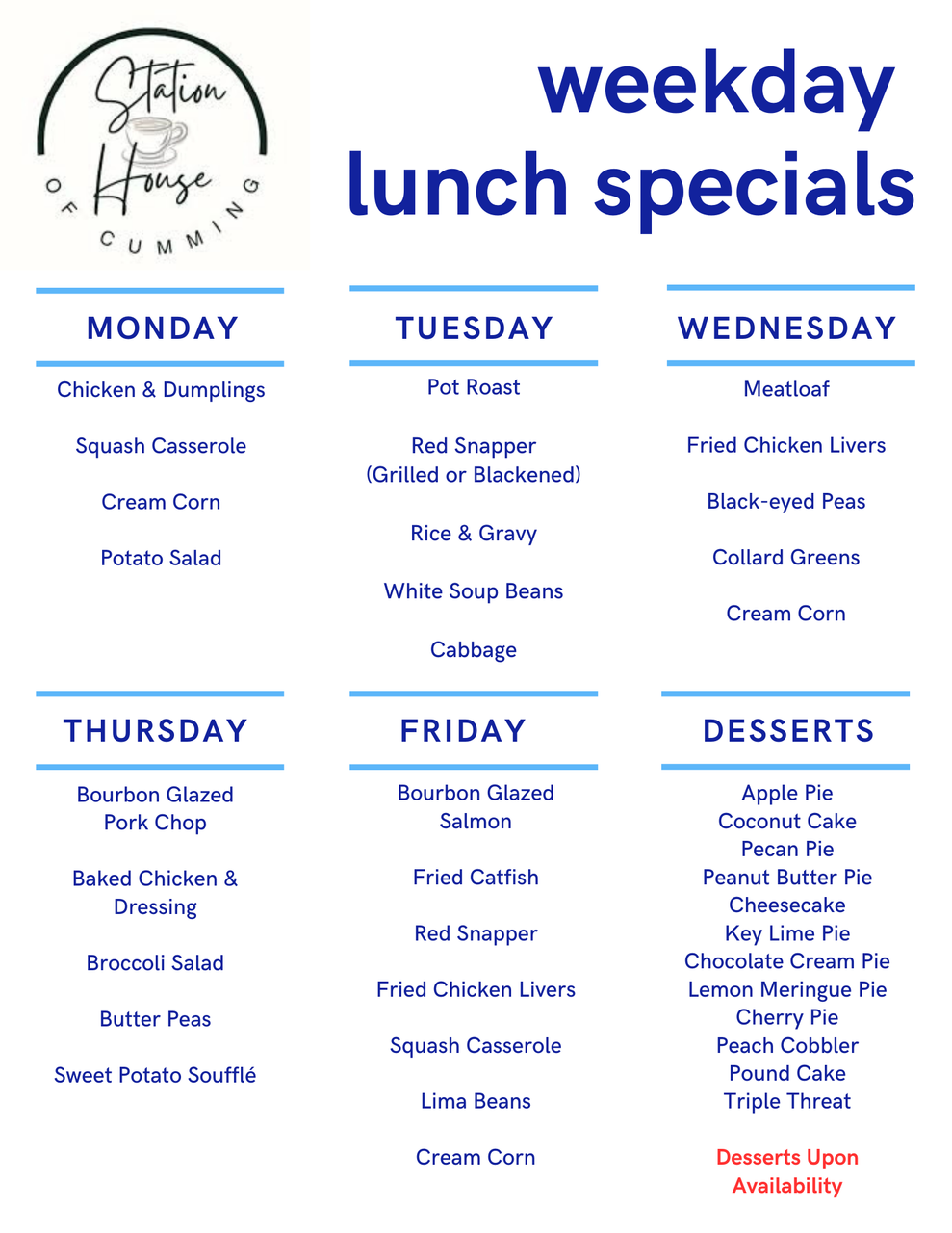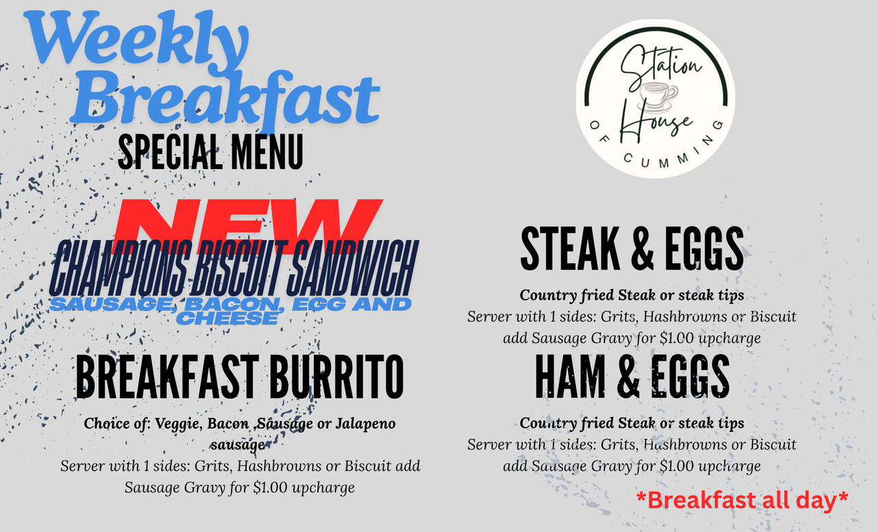 The Station House of Cumming is a cozy breakfast restaurant located in the heart of Cumming, GA.